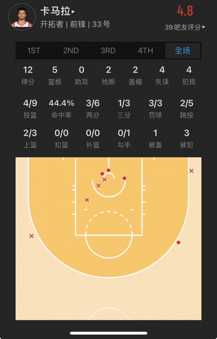掘金37号秀 亨特-泰森 出战4.3分钟