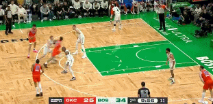 4月4日讯 NBA常规赛,雷霆半场47-61凯尔特人。