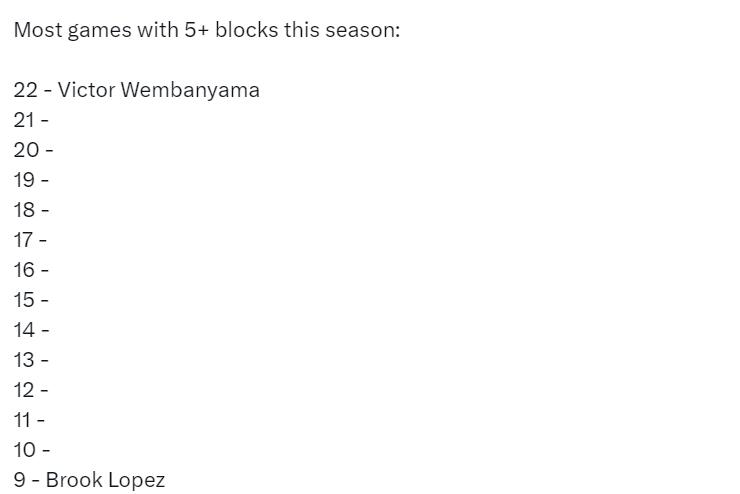 4月3日讯 NBA常规赛,马刺在客场以105-110不敌掘金。此役,文班亚马出战34分钟,29投9中,三分11中2,罚球6中3,砍下23分15篮板8助攻1抢断9盖帽的准四双数据。本赛季...