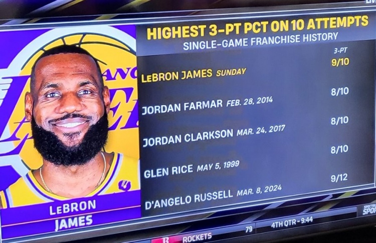 4月1日讯 NBA常规赛,湖人在客场以116-104击败篮网。此役,詹姆斯17投13中,三分10中9,9记三分平生涯纪录轰40分!外加7板5助收下比赛!据统计,詹姆斯本场三分10投9中,...