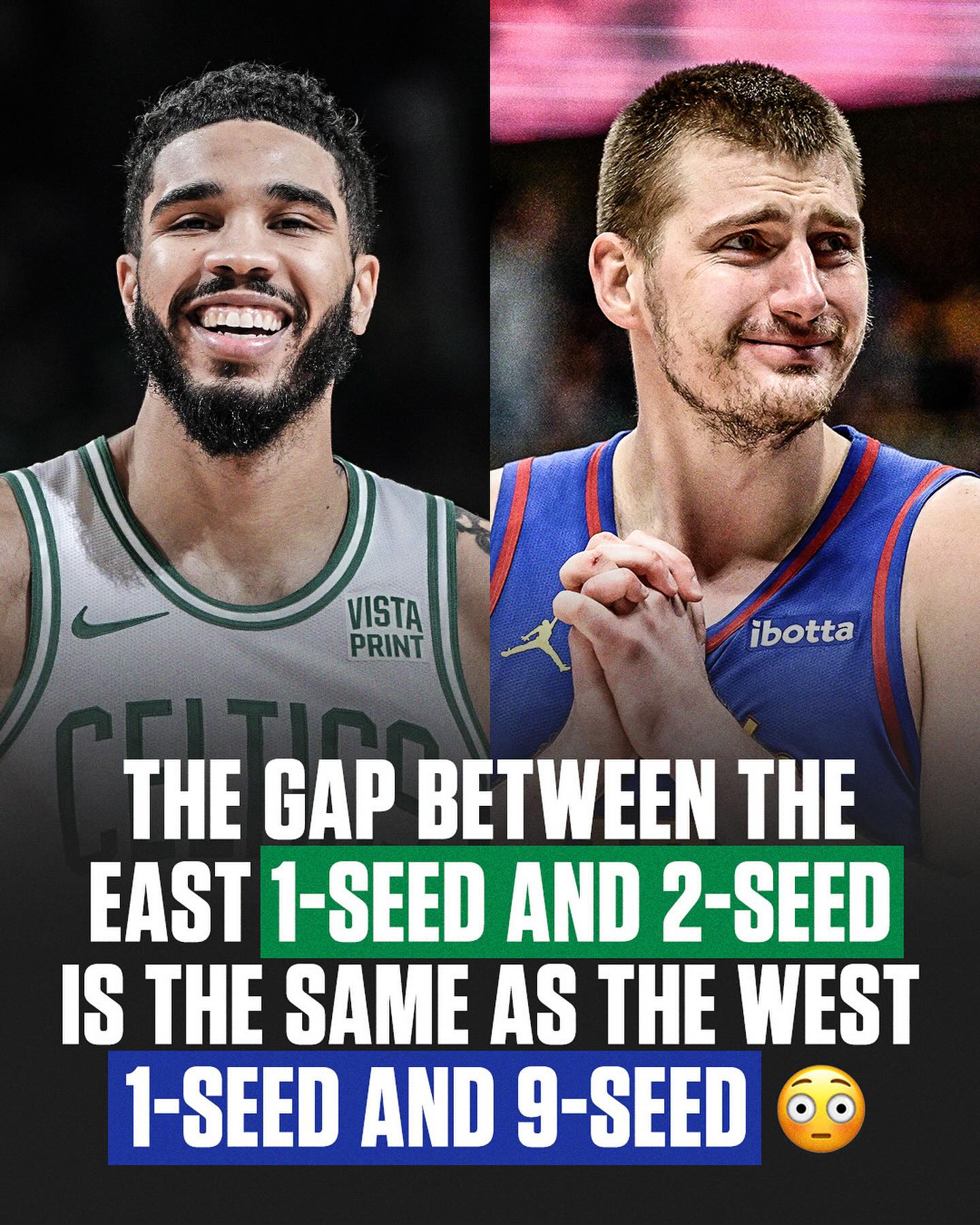 东部第一的凯尔特人领先东部第二的雄鹿11个胜场;西部第一的掘金领先湖人11个胜场,但湖人是西部第九。...
