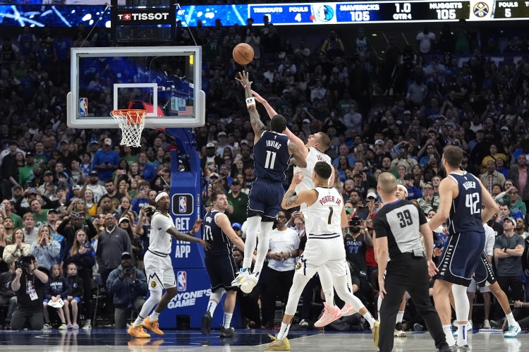 在今天早先结束的一场NBA常规赛中,独行侠在主场以107-105险胜掘金。比赛最后2.8秒,欧文接球后在罚球线后侧面对约基奇打进逆天左手压哨绝杀球。欧文的这一神...