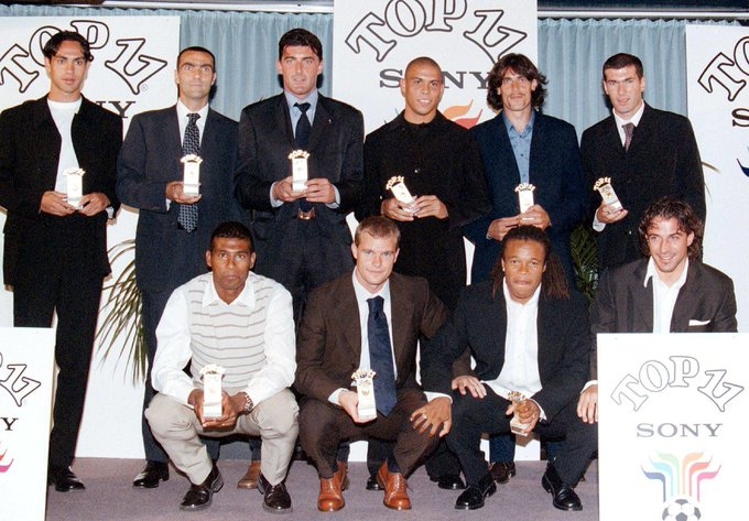 意甲鼎盛时期被称为“小世界杯”。上图是98年的意甲赛季最佳合影,你能认出所有人吗?
