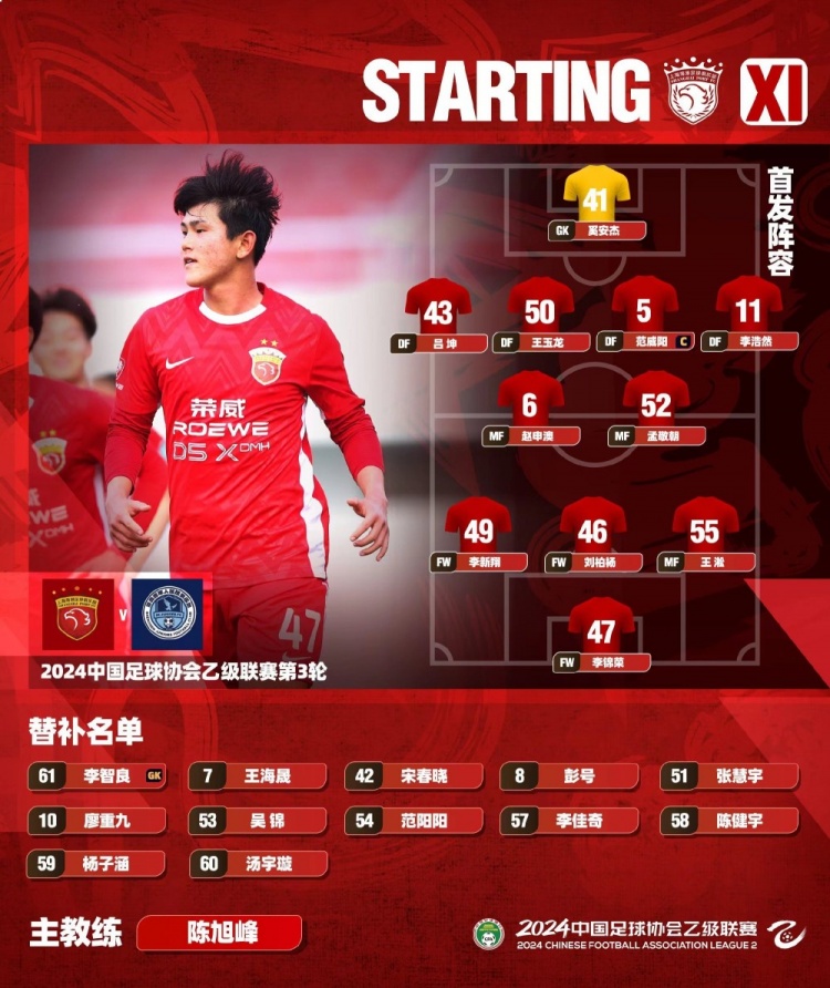 2024中乙联赛第3轮 ,上海海港B队vs深圳青年人 ,今日首发名单。上海海港青春风暴