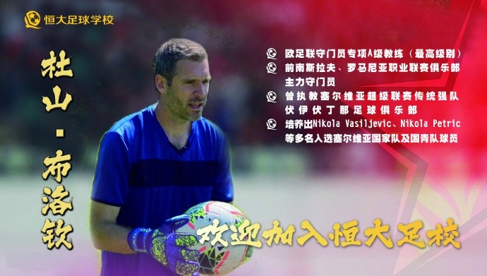 两名塞尔维亚籍教练分别是守门员教练杜山-布洛钦、体能教练阿尔明-泽西洛维奇,恒大足校官方对于两人的加盟表示了欢迎。