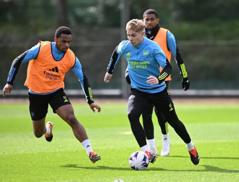 复出的脚步越来越近廷伯昨日参与阿森纳训练,穿上背心对抗