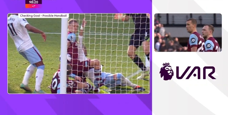 在VAR查看了5分半钟之后,裁判最终判定西汉姆球员手球,进球无效。