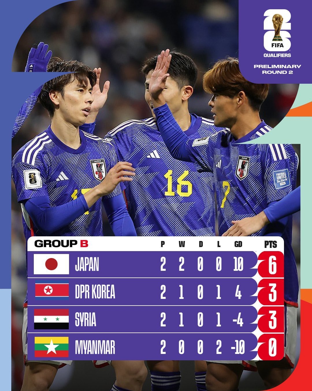 截止赛前,世预赛亚洲区第二阶段已进行2轮,日本前两场全胜打入10球,位列小组第一;朝鲜则是1胜1负,与叙利亚同分以净胜球优势暂居小组第二。