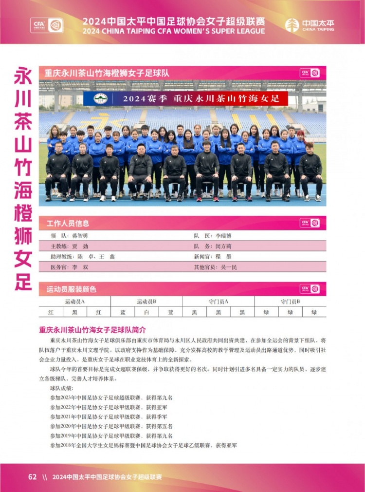 球队巡礼(三):永川茶山竹海橙狮女足、河南万仙山女足、陕西志丹女足、海南农信琼中女足