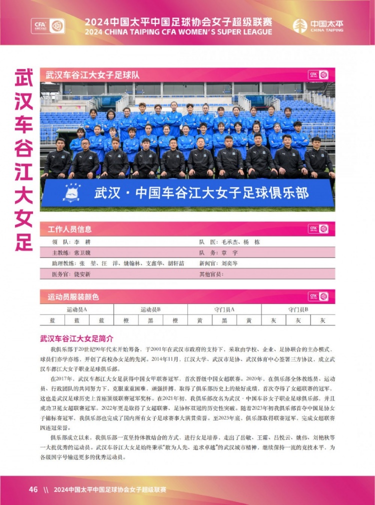 球队巡礼(一):武汉车谷江大女足、上海农商银行女足、长春大众卓越女足、江苏无锡女足