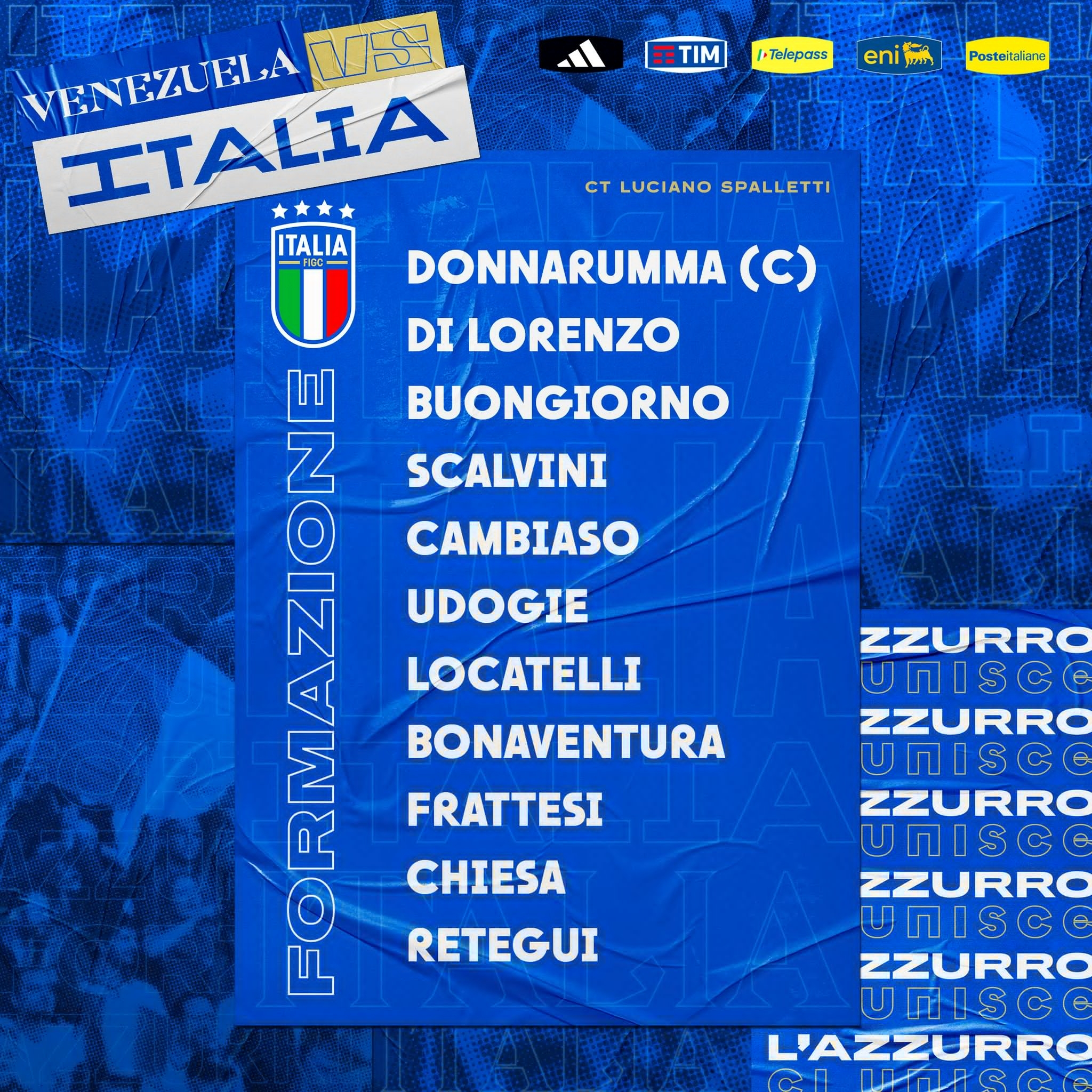 3月22日讯 国际友谊赛,意大利对阵委内瑞拉。赛前,官方公布了本场的首发名单。