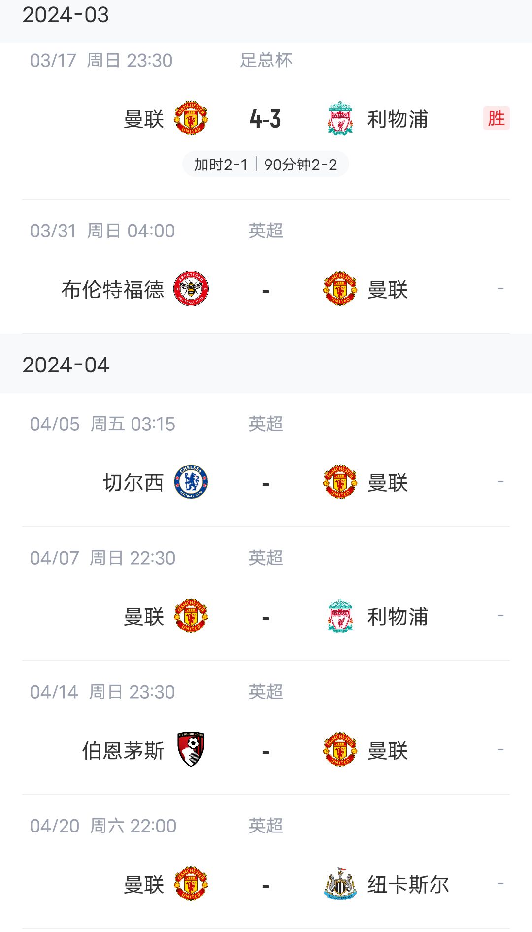 曼联未来赛程