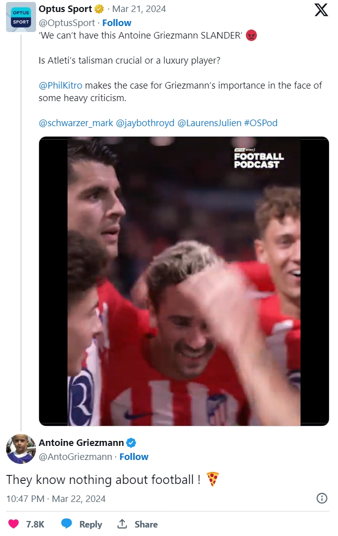 3月23日讯 近日英格兰前国脚博斯罗伊德和澳大利亚前国门施瓦泽等人做客播客一档节目时,谈到了法国球星格列兹曼。