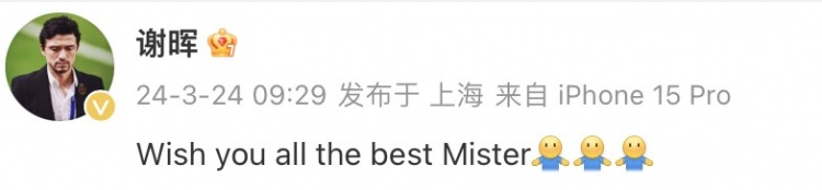 埃里克森曾于2015年到2016年间在海港执教了两个赛季,当时谢晖也在海港担任助理教练。在利物浦传奇队的比赛结束后,谢晖在社媒向埃里克森祝福写道:“祝你一切顺利,先生。”