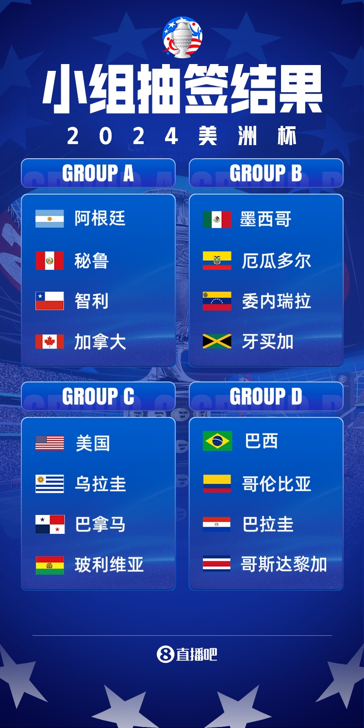 2024美洲杯最终分组结果: