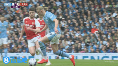 4月1日讯 英超第30轮,曼城vs阿森纳。比赛第38分钟,赖斯在激烈对抗中放倒哈兰德,主裁判没有出牌。