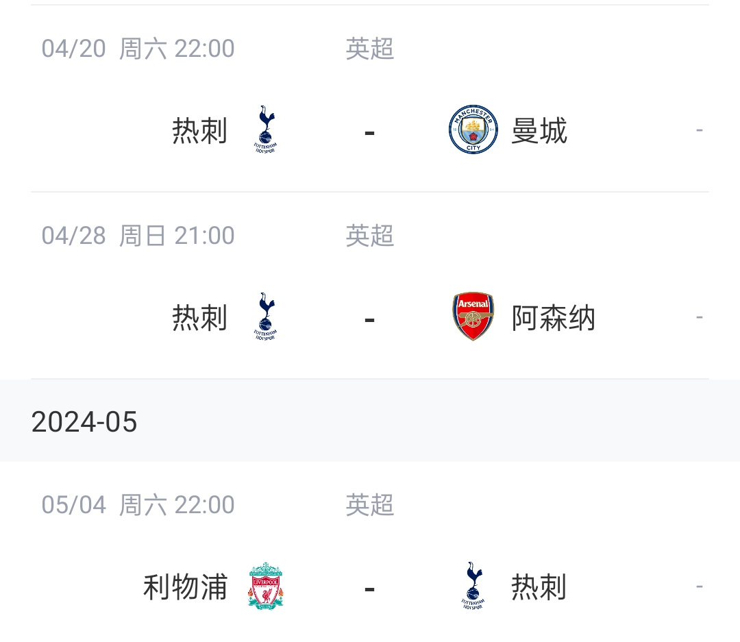 争冠判官?本月底开始,热刺将连战曼城、阿森纳和利物浦!