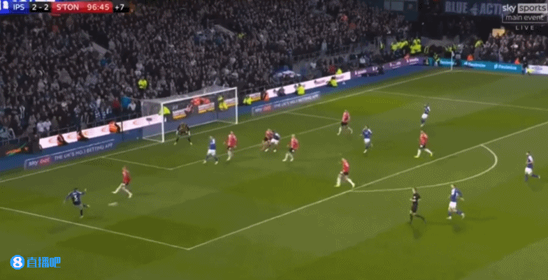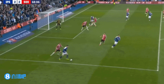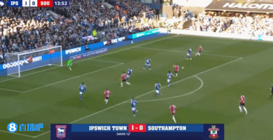 比赛第68分钟,布劳德海德破门,伊普斯维奇2-2南安普顿。