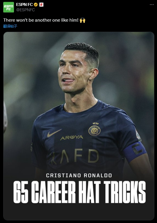 半场戴帽+生涯65帽!ESPN感叹:不会再有人像C罗一样了