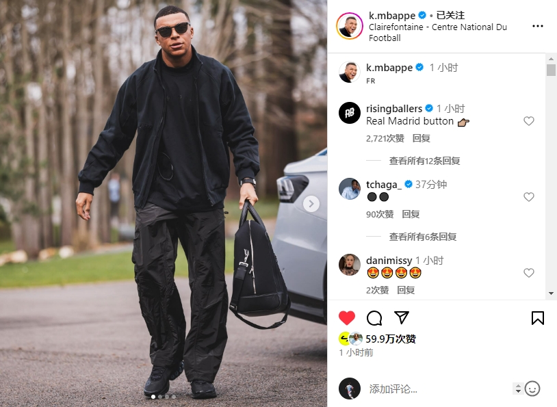 3月19日讯 国际比赛日即将到来,姆巴佩今日更新社媒,晒出自己赴克莱枫丹的照片。