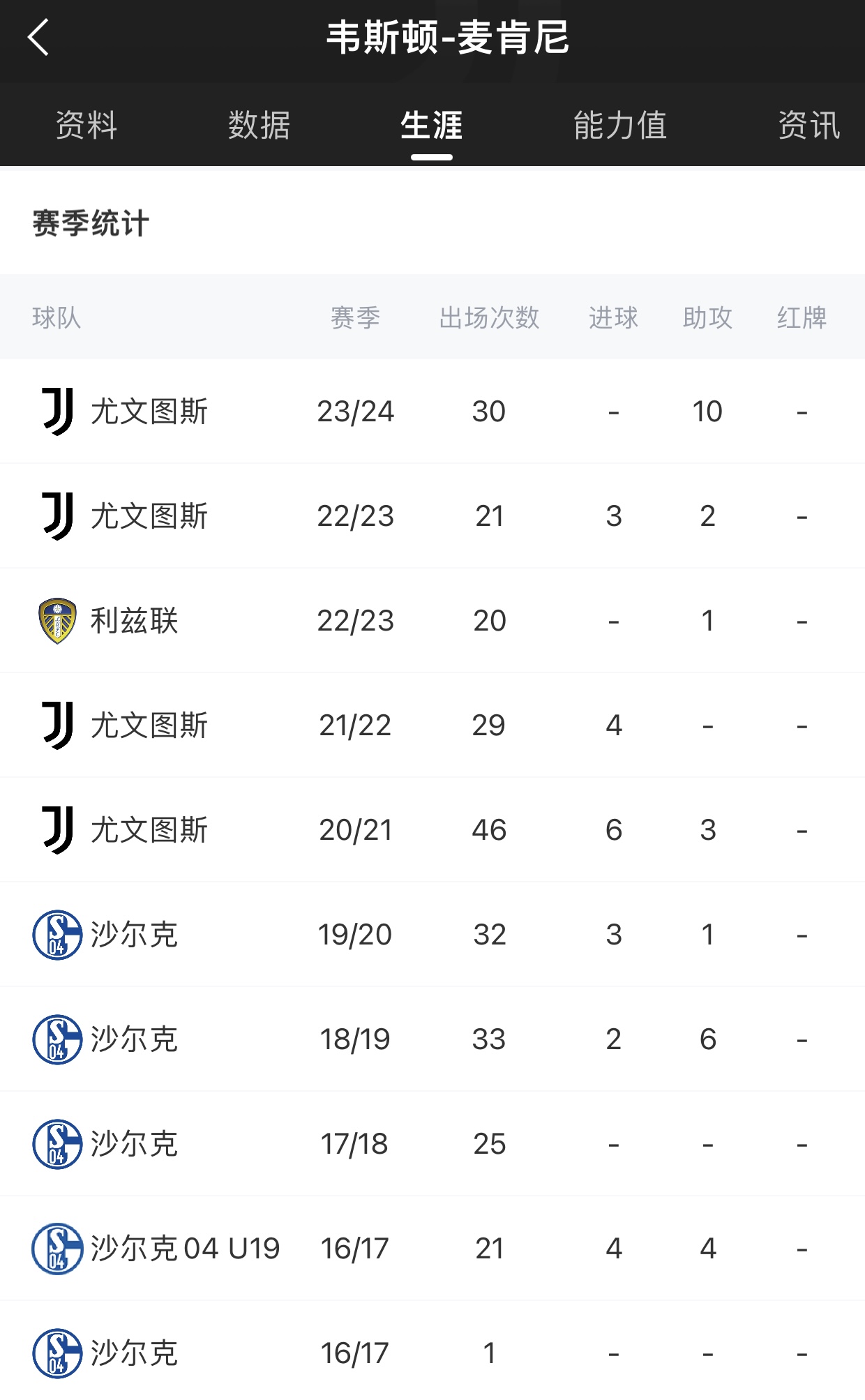 麦肯尼本赛季收获10次助攻,而此前4个赛季他在俱乐部加起来才7次助攻。