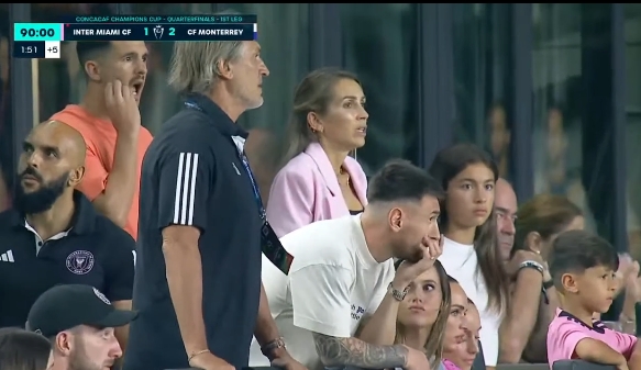 04月04日讯 美冠杯1/4决赛首回合,迈阿密国际1-2蒙特雷,本场比赛梅西缺阵,在看台观赛。