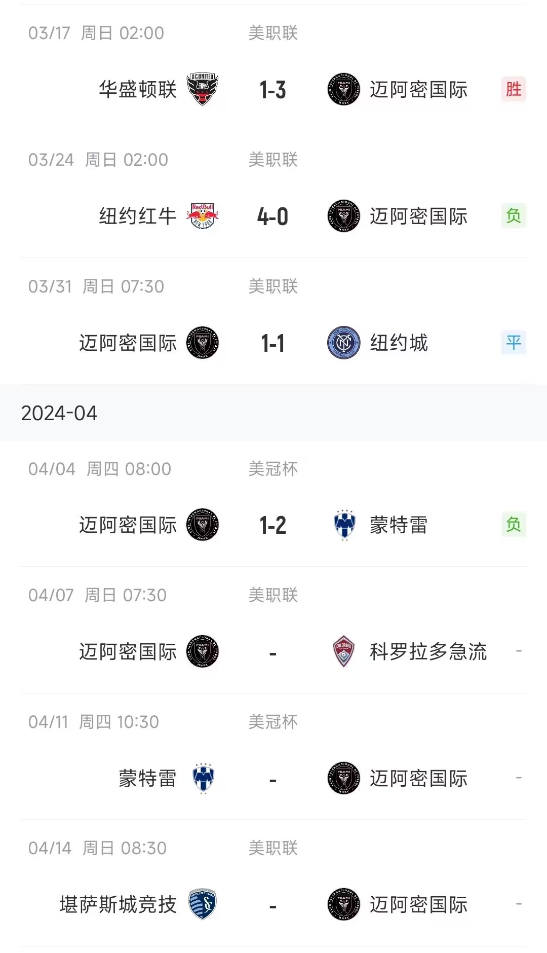 梅西从迈阿密3-1华盛顿这场开始缺席至今↓