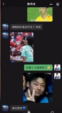 徐皓阳说:“我们还会发戴伟浚的表情包,因为戴伟浚老跟汪海健发他自己的表情包,所以就流传出来了。”