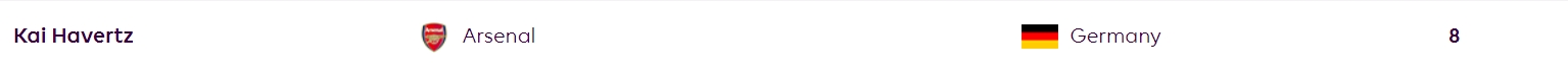 据英超官方统计,哈弗茨现在身背8张黄牌,是枪手队内黄牌数量最多的球员。