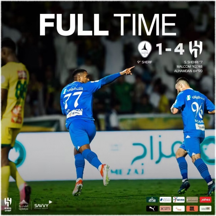 沙特联-利雅得新月4-1卡利杰取32连胜&12分领跑 马尔科姆双响