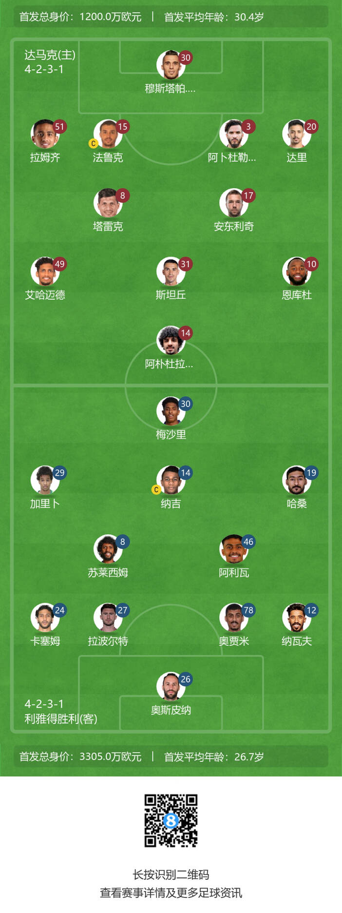 达马克首发:30-泽赫巴、20-达里、3-贝德兰、15-法鲁克-沙法伊、51-拉姆齐、17-安东利奇、8-塔雷克、49-艾哈迈德、10-恩库杜、31-斯坦丘、14-阿尔沙赫拉尼