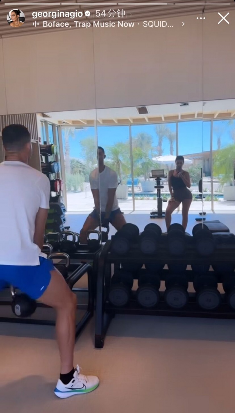 3月20日讯 目前,C罗正和家人在沙特的红海新城度假。今天,女友乔治娜晒出视频,她正和C罗一起在健身房锻炼。