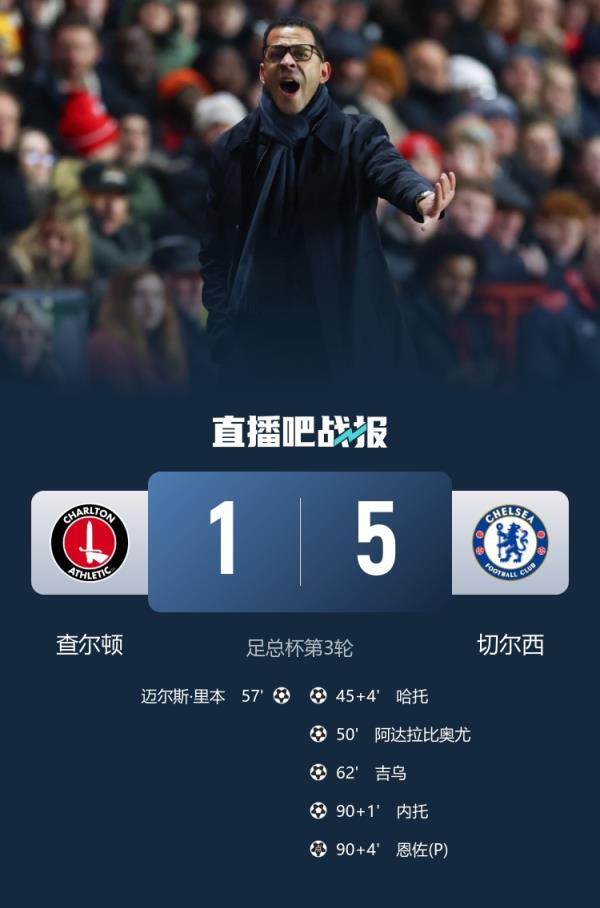 切尔西5-1查尔顿晋级足总杯32强,新帅罗塞尼尔取得上任开门红。