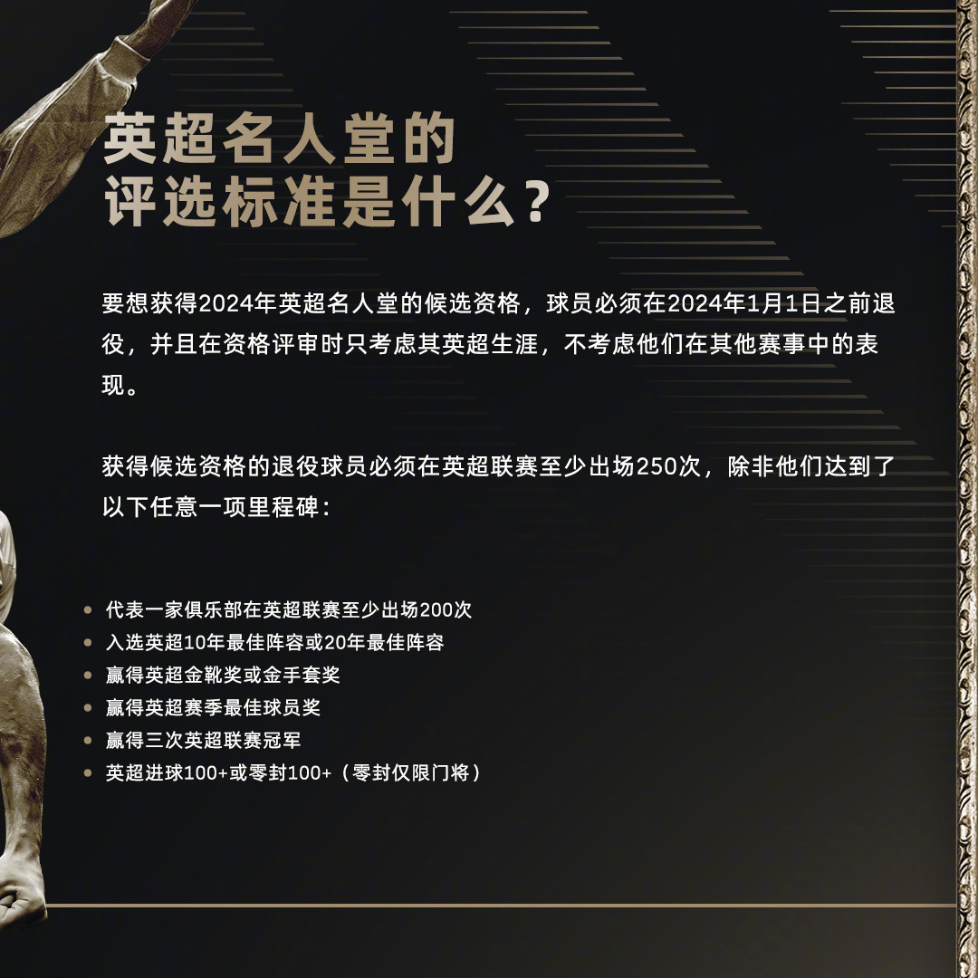 英超名人堂用于表彰以及庆祝自从1992年英超成立以来,在英超联赛取得非凡成就以及做出重大贡献的个人,这是英超联赛官方授予的最高个人荣誉。