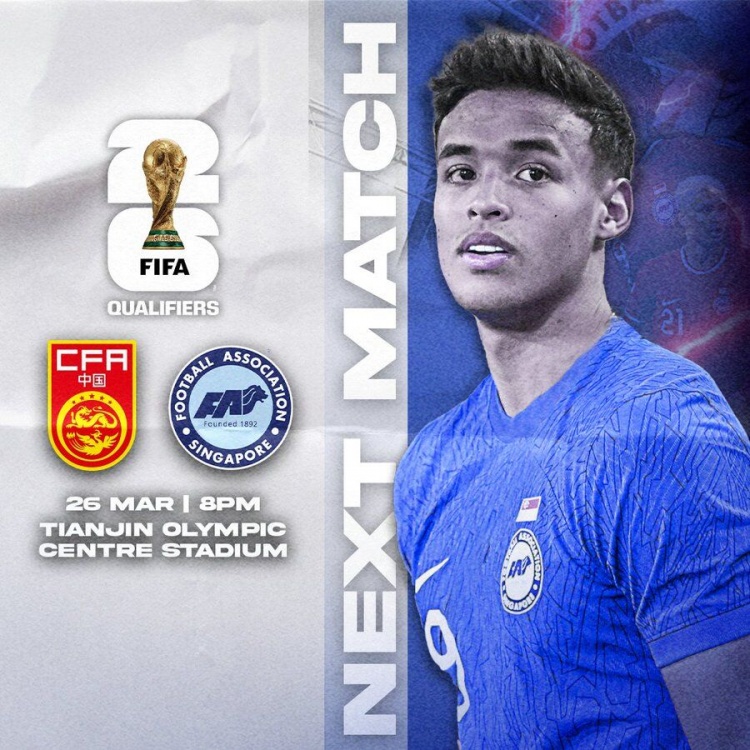 3月25日讯 今天,新加坡足协官方发布了明天客场对阵中国队的比赛海报。