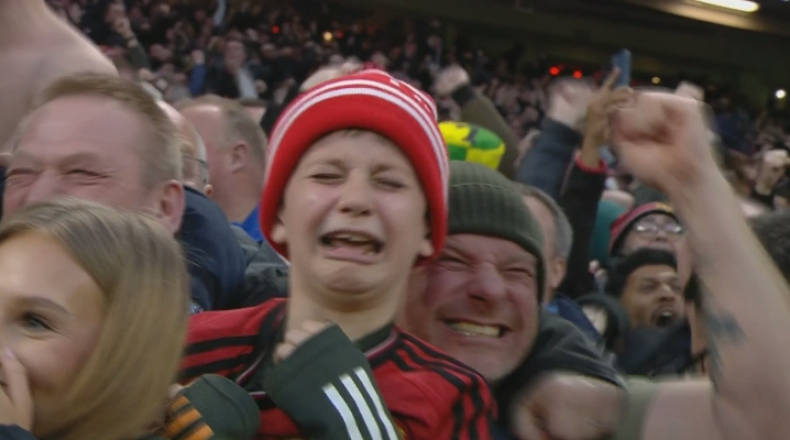 太激动阿马德读秒绝杀利物浦,曼联小球迷喜极而泣