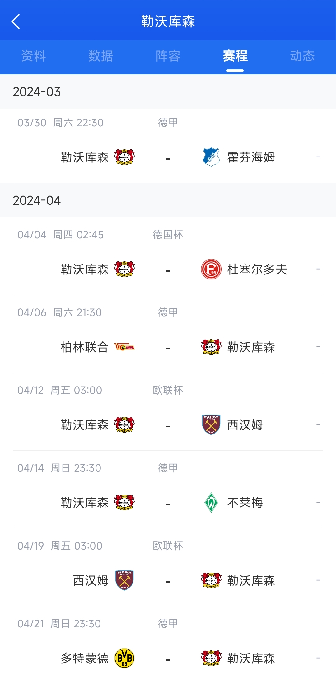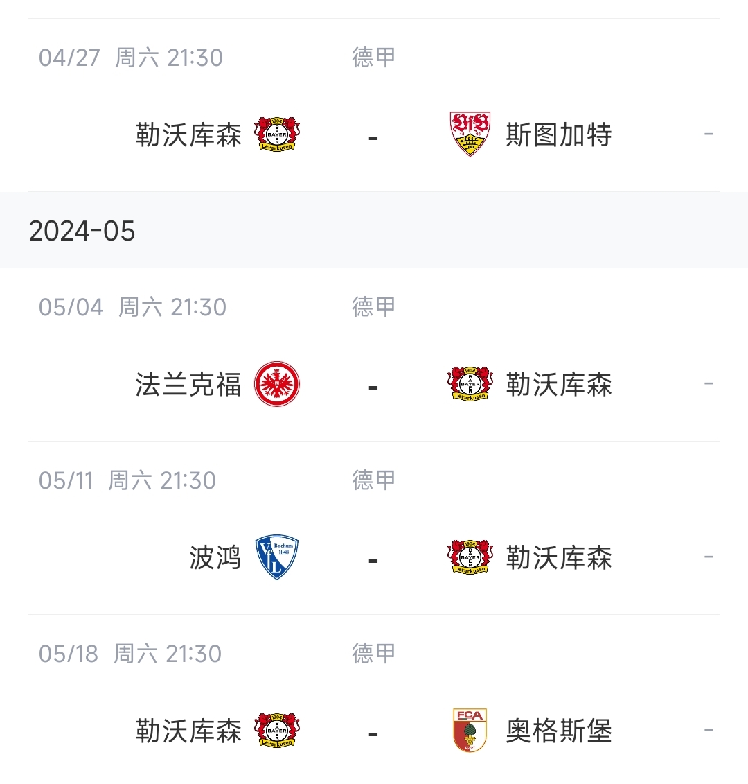 德甲还剩最后8轮,勒沃库森只要拿下其中5场胜利,就可以确保夺得本赛季德甲冠军。