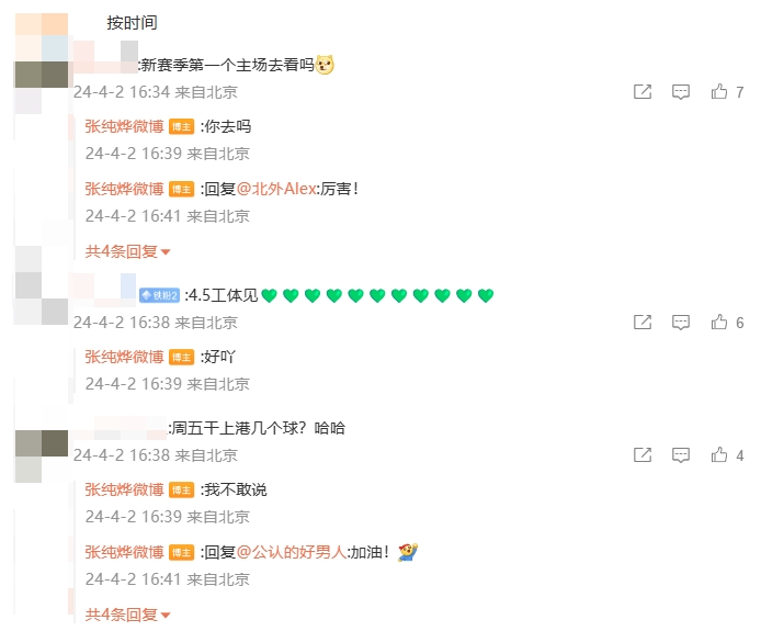 04月03日讯 知名主持人张纯烨是北京国安球迷,日前她在社媒和网友就相关话题进行互动。