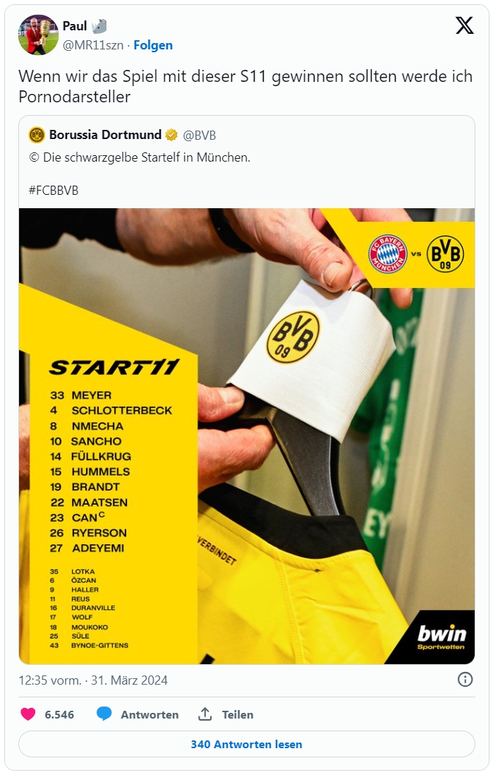 多特球迷:这首发要是能赢拜仁,我直接去当成人片演员