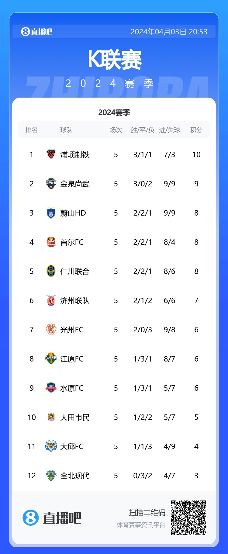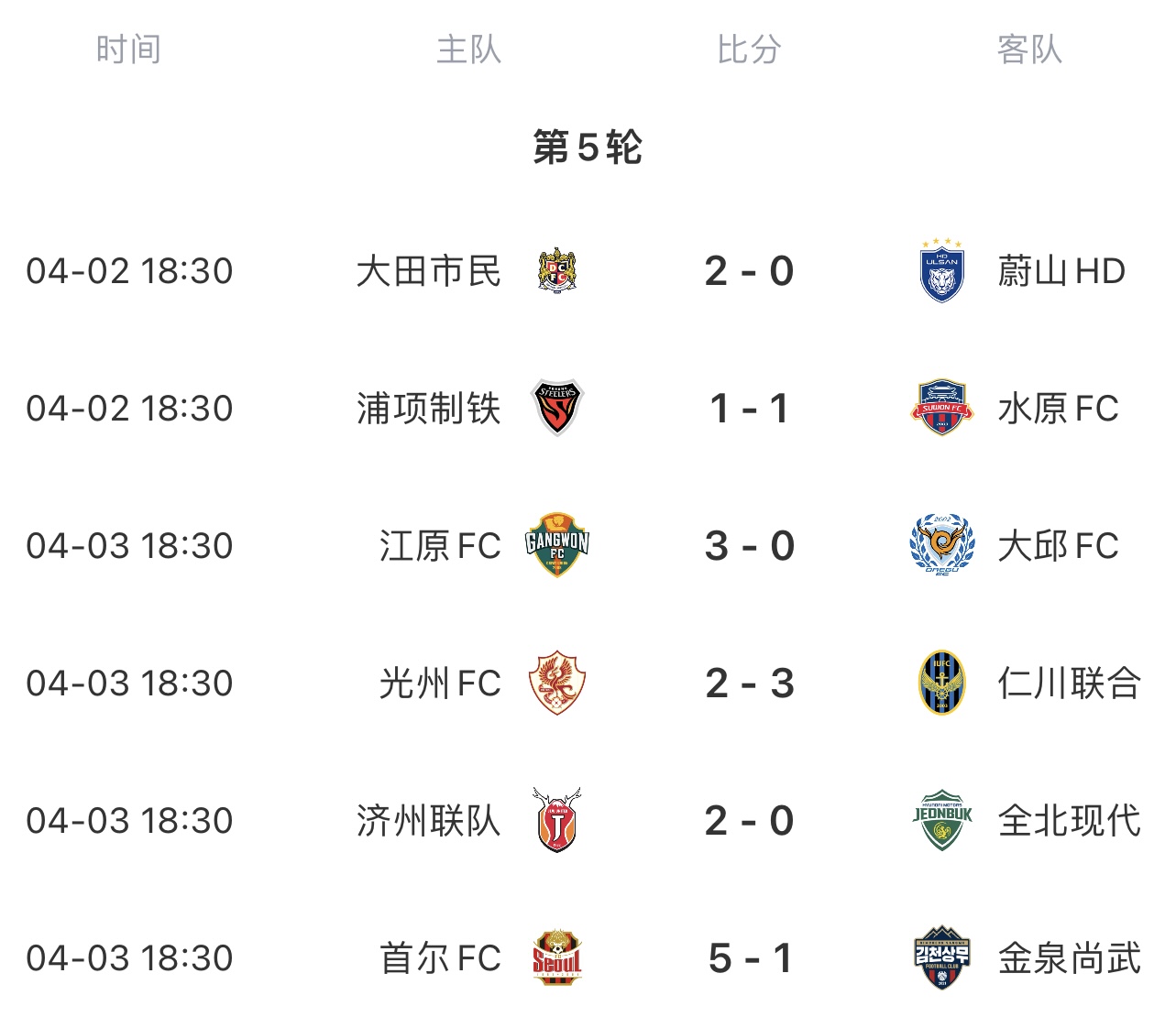 04月03日讯 K联赛第5轮,全北现代客场0-2不敌济州联,0胜3平2负积3分继续垫底,全北现代也是本赛季K1和K2联赛中唯一还未取得联赛首胜的球队。