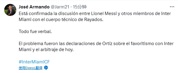 随后claro sports记者José Armando证实,两方发生了争吵,一切都是口头的争吵,问题在于奥尔蒂斯此前的言论以及今天的裁判。